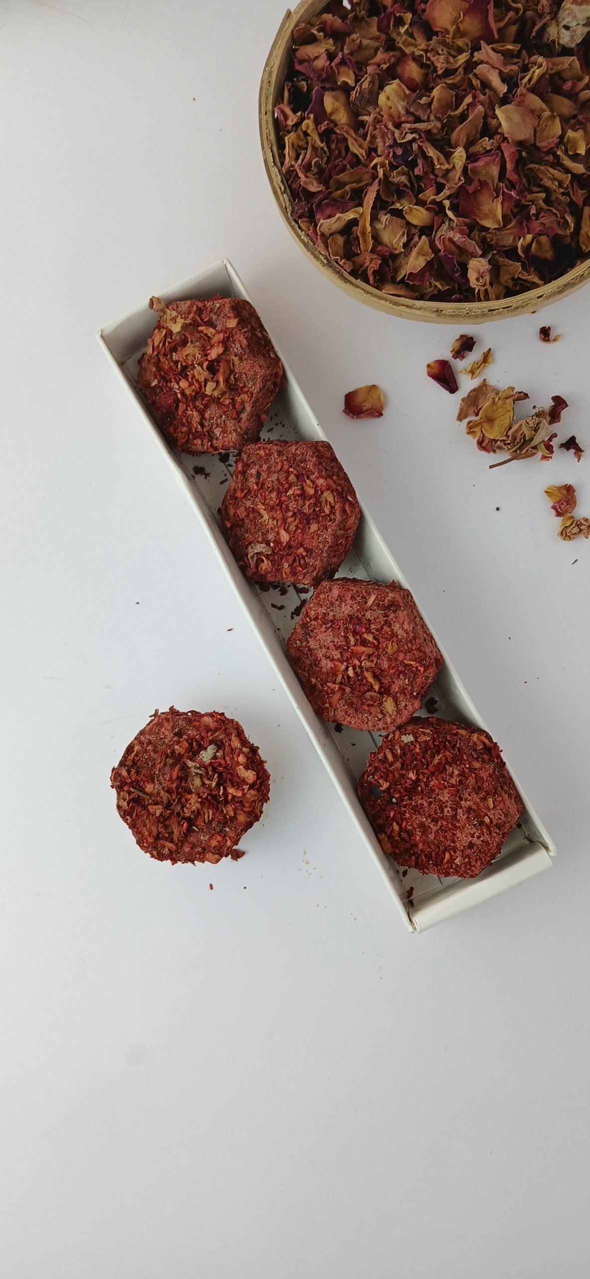 Handcrafted with natural rose petals for a soft, loving aroma